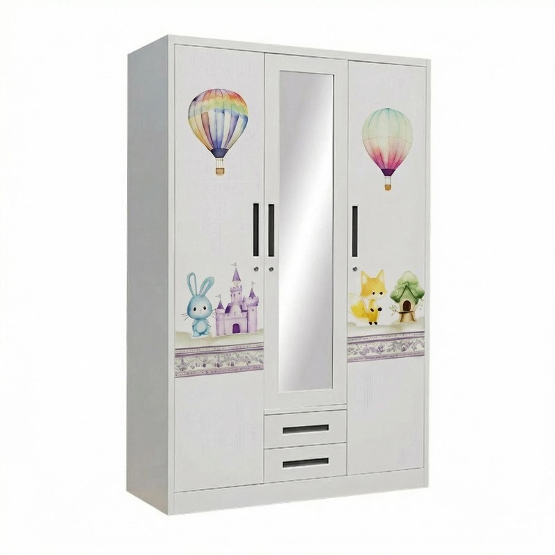 | Fittings | One shelf and one clothing hanging rod in the left compartment; one shelf, one hanging rod, and two drawers in the middle compartment; and four shelves in the right compartment. |